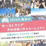 2025-12-16 / 最終更新日時 : 2025-12-16 wapj 中高生向けプログラム 2026年春休みオーストラリア学校体験入学&ホームステイ 2026年春休みオーストラリア学校体験入学&ホームステイ 春休みコース/プログラム紹介 オーストラリア(中学生・高校生)コース 13日間 概要 旅行期間 2026年3月24日(火)~4月5日(日) 参加資格 中学・高校生 […]