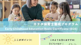 カナダ保育士養成プログラム ここがポイント! ✅カナダBC州政府公認保育士ECE資格取得 ✅有給インターンシップ(Co-op) ※Co-op先のPlacement保証をしております。 ✅カナダ就労ビザ、永住権への近道 こ … 続きを読む カナダ保育士養成プログラム