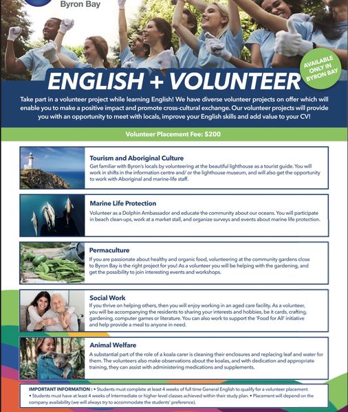 オーストラリアのByron Bayで英語を学びながらボランティアに参加しませんか。