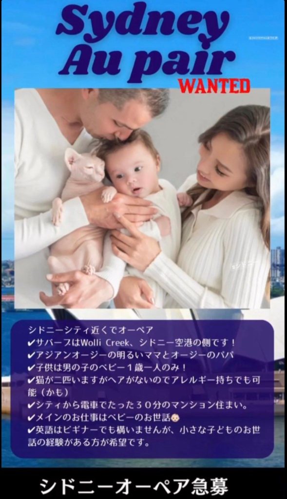 2022-08-26 / 最終更新日時 : 2025-03-19 wapj Au Pair/オペア募集情報 オーストラリアのオーペア&デミペア募集情報 オーストラリアのオーペア&デミペア募集情報! エントリー/お問い合わせ オペア渡航予定国 (必須) お名前 (必須) フリガナ (必須) メールアドレス (必須) 性別 (必須) 女性男性 国籍 (必須) 電話番号 (必須) 郵便番号 住所 (必須) 生年月日 (必須) 年齢 (必須) 最終学歴 (必須) 高校専門学校短大大学その他 最終卒業(予定)年月 (必須) 出発可能時期 (必須) 海外渡航歴(必須) ありなし パスポート(必須) ありなし 旅券番号 パスポートの有効期限(年月日) 履歴(必須) 高等学校卒業より最新の職歴・学歴までをご記入ください。 免許/資格(必須) 普通自動車第一種運転免許、TOEIC、TOEFL、英検など 渡航国の語学力(必須) 障なくコミュニケーションが可能日常会話には問題がないある程度の意思表示は可能まだ初歩的段階にある 趣味/特技(必須) 健康状態(必須) アレルギーや過去の疾病等ご記入下さい。 喫煙(必須) ありなし 保育経験(必須) チャイルドケア経験がある方は、子供の年齢、人数、お世話をした時間などの詳細をご記入ください。 二歳未満の保育経験(必須) ありなし 障害児の保育経験(必須) ありなし お世話ができる子供(必須) 当てはまるもの全て記入してください。 障害児3ヶ月〜12ヶ月児1〜2歳3〜5歳6〜7歳8〜10歳 お世話ができる子供の人数(必須) 1人2人3人以上 オペアプログラムへの参加/志望動機(必須) 渡航中の国内連絡先住所 (必須) 渡航中の国内連絡先氏名(必須) 渡航中の国内連絡先続柄(必須) 渡航中の国内連絡先電話番号(必須) ご予算(必須) ~30万円30~60万円60万円~100万円100万円~150万円150万円~200万円200万円以上 備考 Δ FacebookXBlueskyHatenaCopy