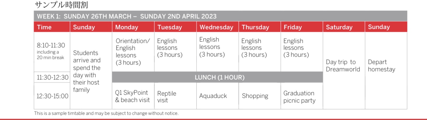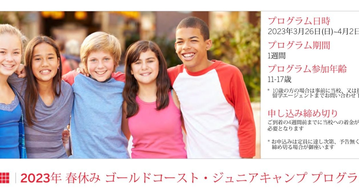 2023年 春休み オーストラリア、ゴールドコースト・ジュニアキャンプ プログラム