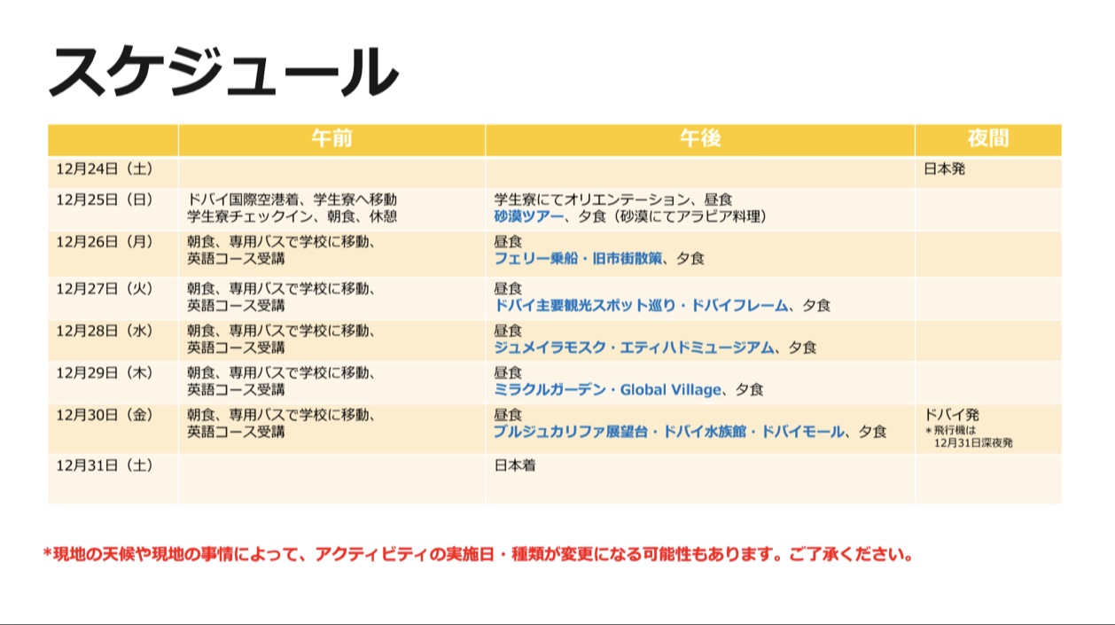 ◆2022年 ドバイ冬休みジュニア(中高大生)短期留学プログラム◆