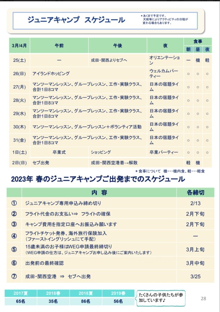 2023年春休み ジュニアキャンプ in フィリピン、セブ島