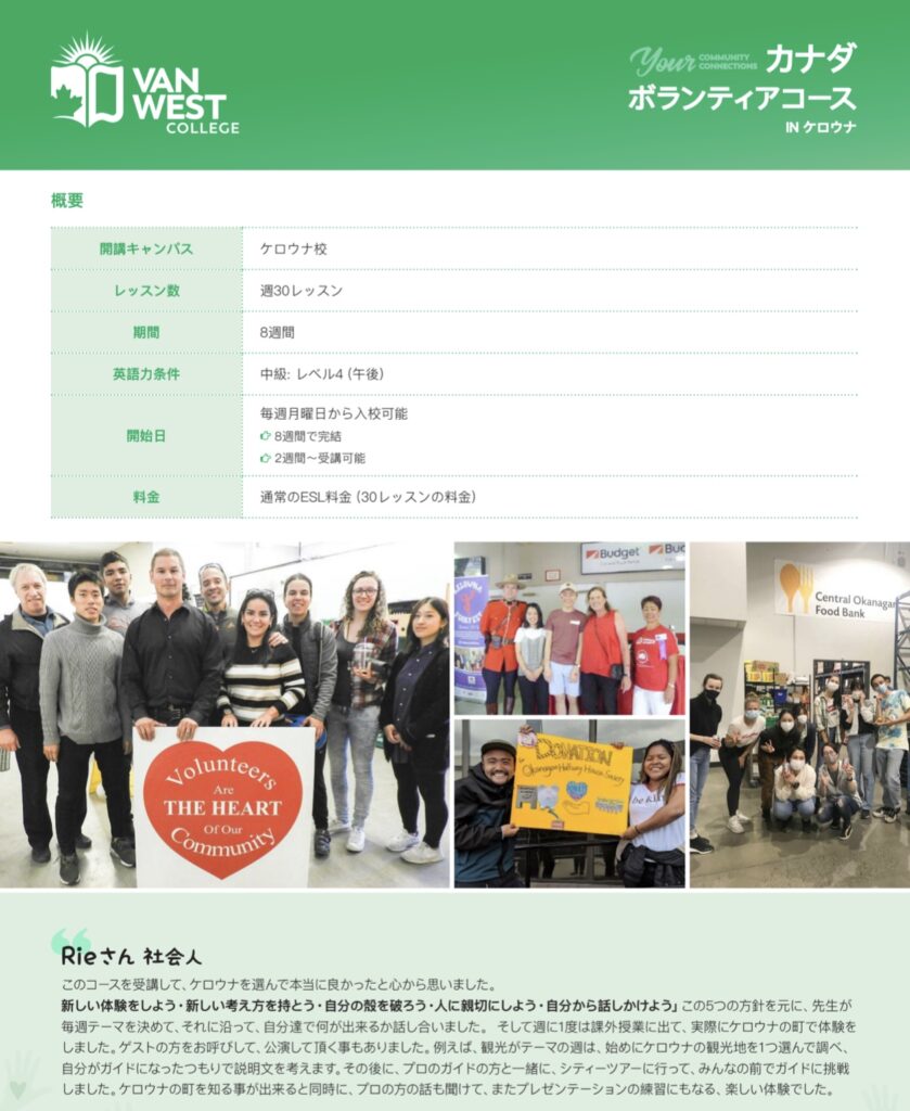 カナダの街ケロウナで英語+ボランティア体験!