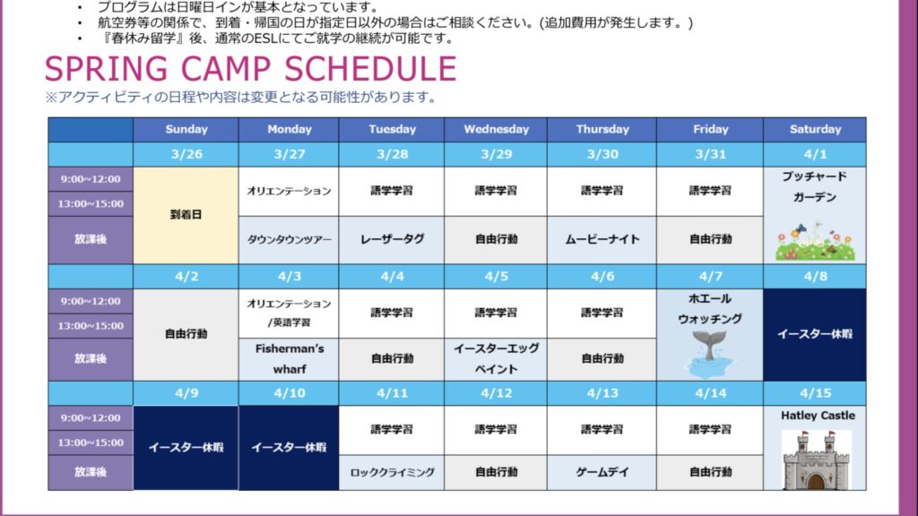 2023年春、カナダ/ビクトリア春休みキャンプ開催