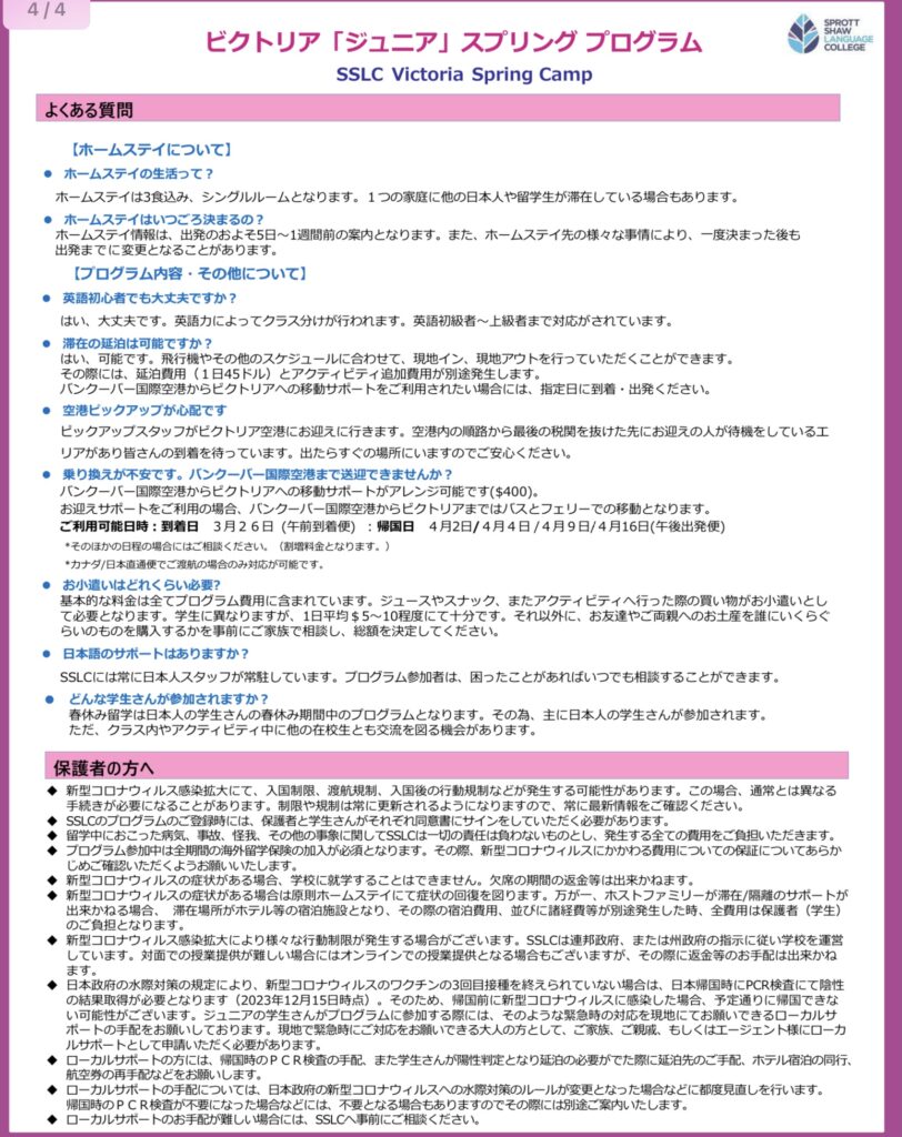 ◆2023年春、カナダ、ビクトリア春休みキャンプ開催◆