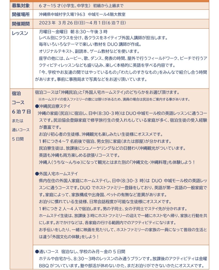 ◆2023年春休みEnglish Camp 沖縄◆