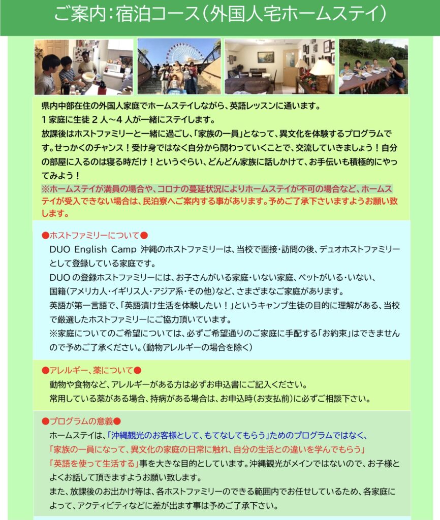 滞在方法:沖縄民泊寮ステイ、外国人宅ホームステイ、通いコース