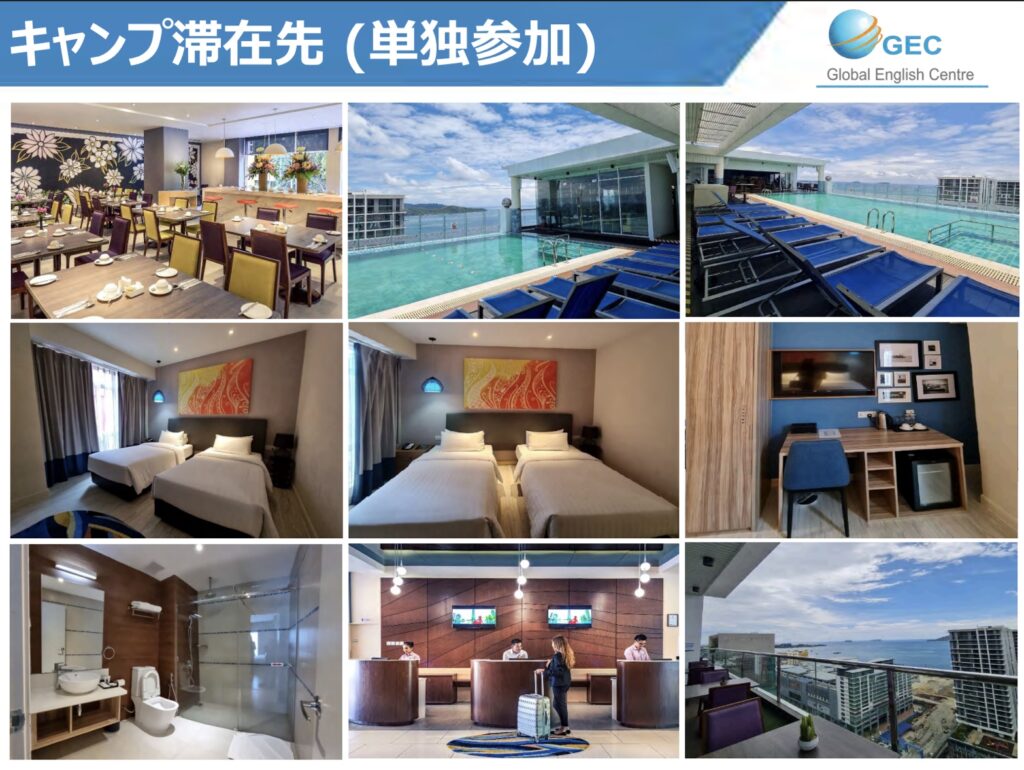 GECイングリッシュ サマー キャンプの宿泊施設は、1人またはグループで参加する学生向けのホテルツインシェアリングルーム(2人部屋)と、