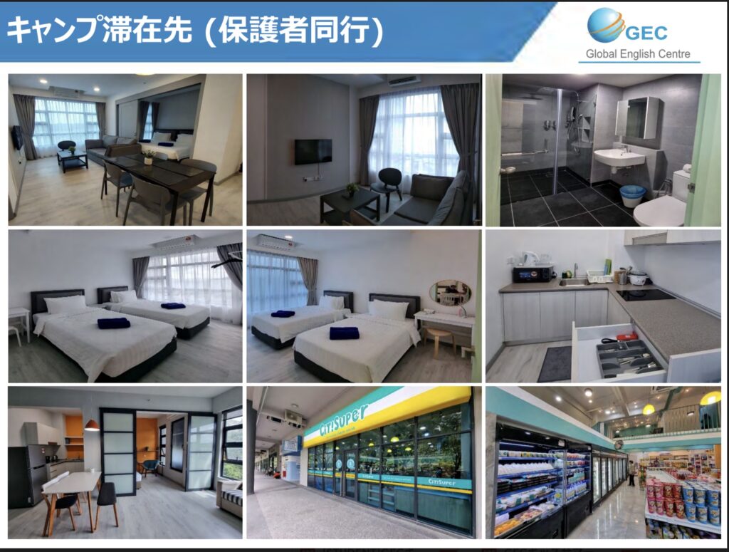 保護者と一緒に参加する学生向けのホテルアパートメント(2ベッドルーム)のいずれかを利用できます。