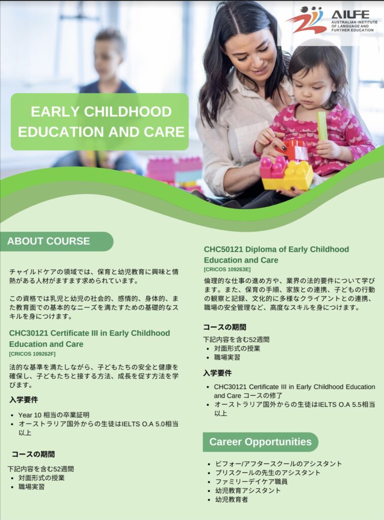 一般英語コースもあり 日本人スタッフも常駐、オーストラリアの保育士資格取得可能!