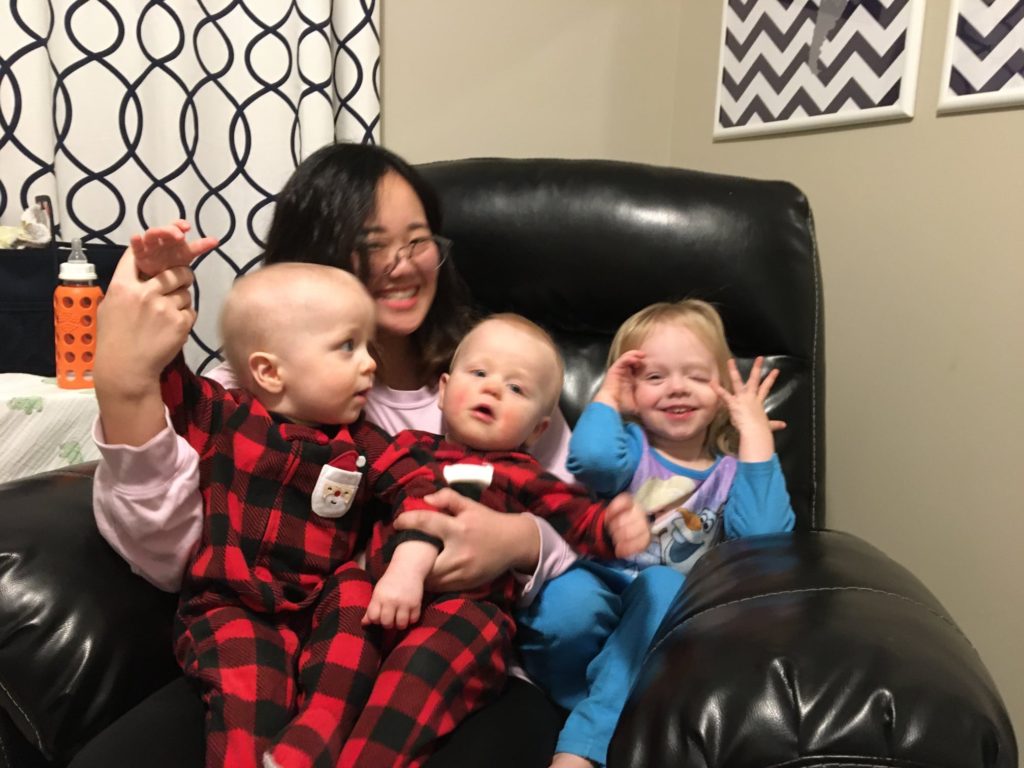 私は、カンザス州で 2 歳と0歳双子の世話をしています。