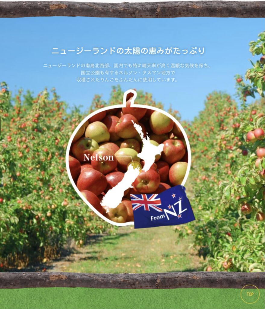 ニュージーランド産りんごストレート果汁96%、濃縮還元果汁4%(りんご、レモン)/香料、酸化防止剤(V.C)
