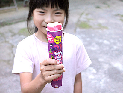 片手で持ち運びやすく、アイスが溶けても手が汚れにくい、押し出しスティックタイプ。