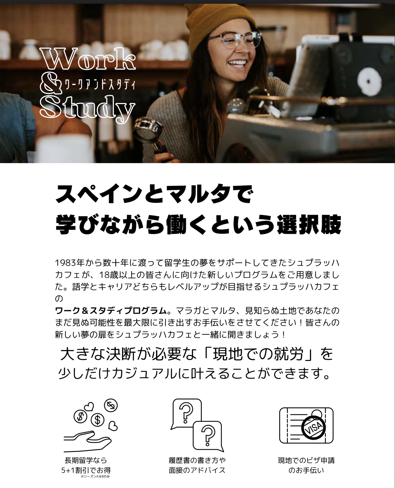 ※ Work&Study マルタとマラガで働きながら学ぼう!と記載の上、お問合せください。