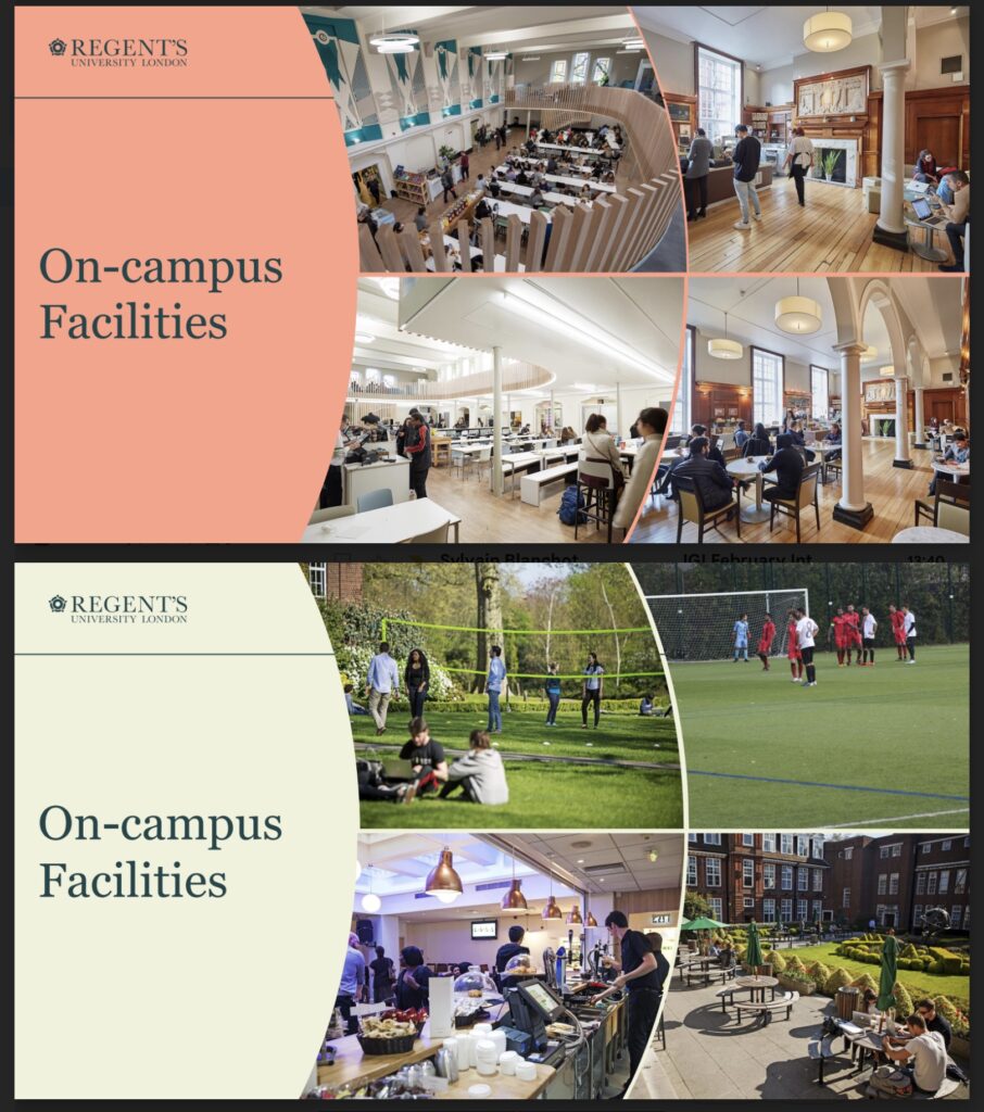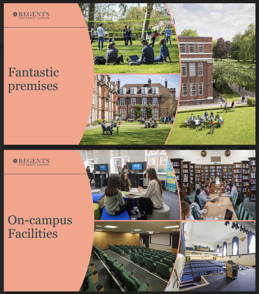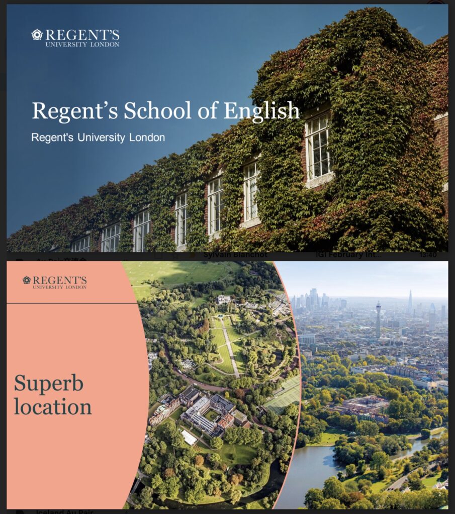 Regent’s university Londonはベイカーストリート駅から徒歩5分ほどのところにあるリージェントパークの中にある学校です。公園といっても日本のような大きな公園ではなく森の中にあるような感じの学校です。