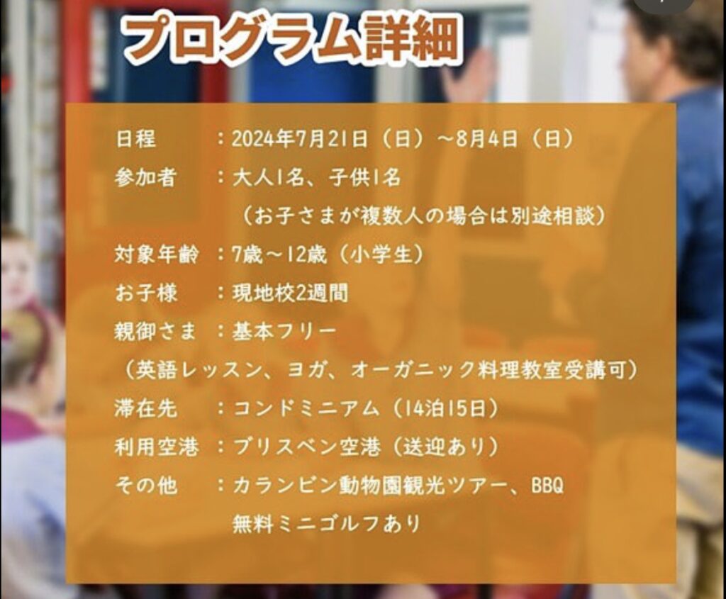 2024年夏休み オーストラリア現地小学校2週間体験 親子留学