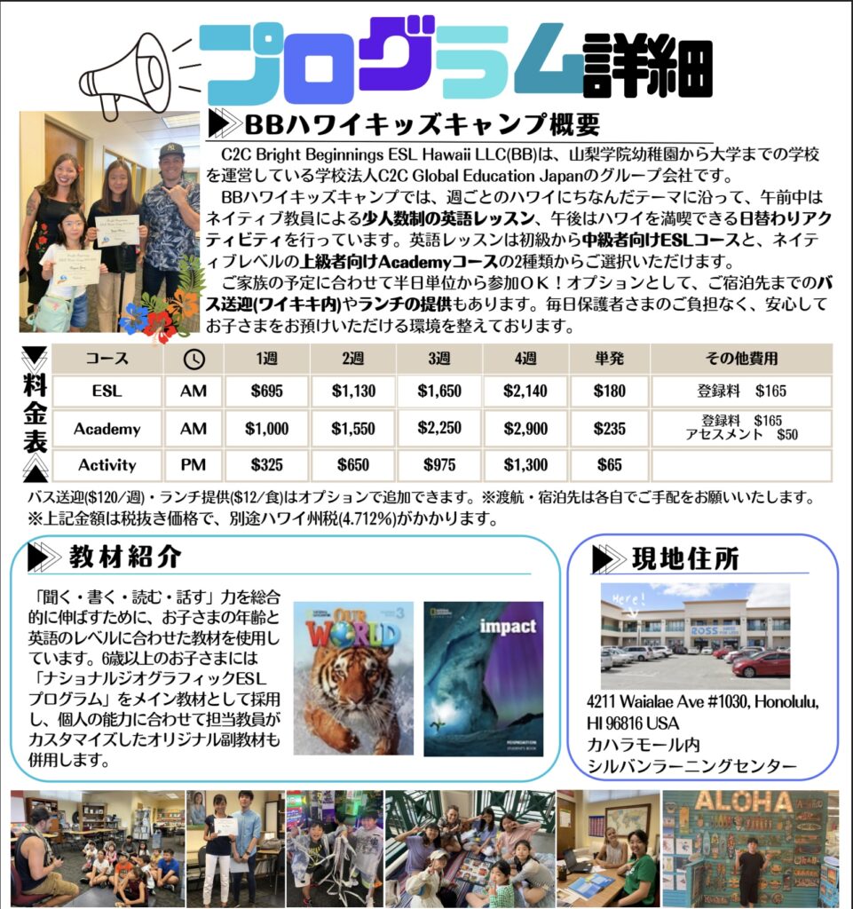 現地参加型ハワイキッズキャンプ~2024年夏 申込受付中~