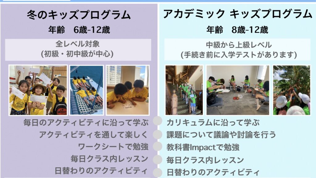 2024-25年冬のハワイキッズプログラム(パームス)