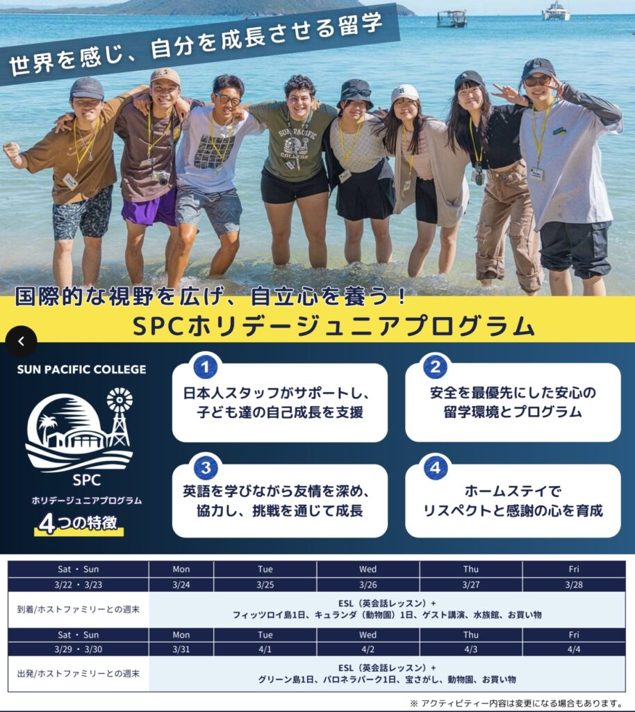 2025 年春休み、オーストラリア、ケアンズ ジュニア留学プログラム
