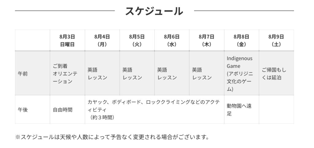別途、航空券代、海外傷害保険代、海外送金手数料、オーストラリア観光ビザETAがかかります。