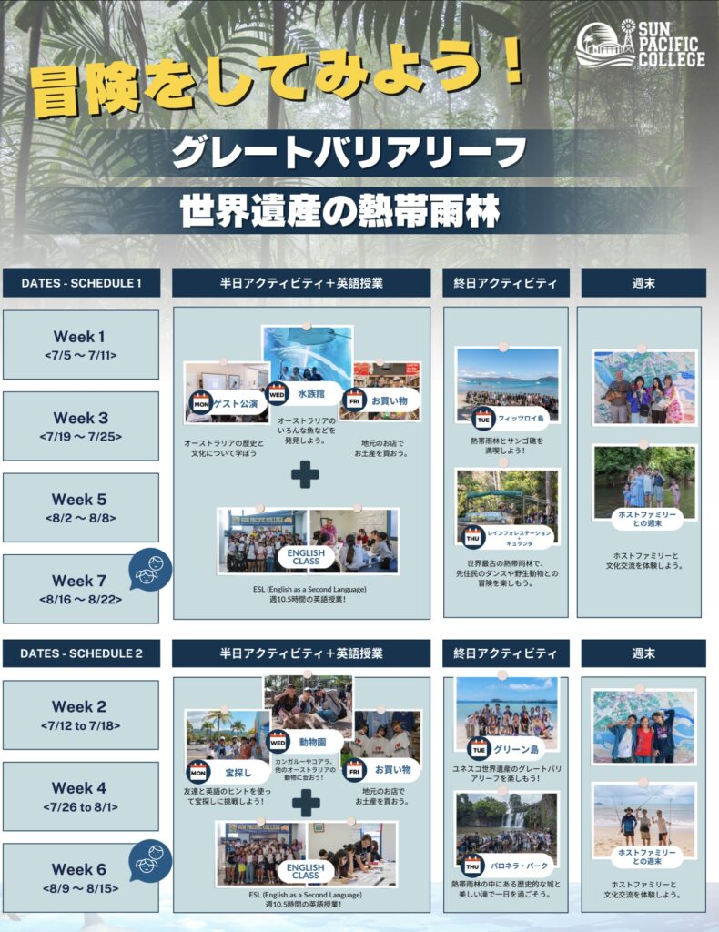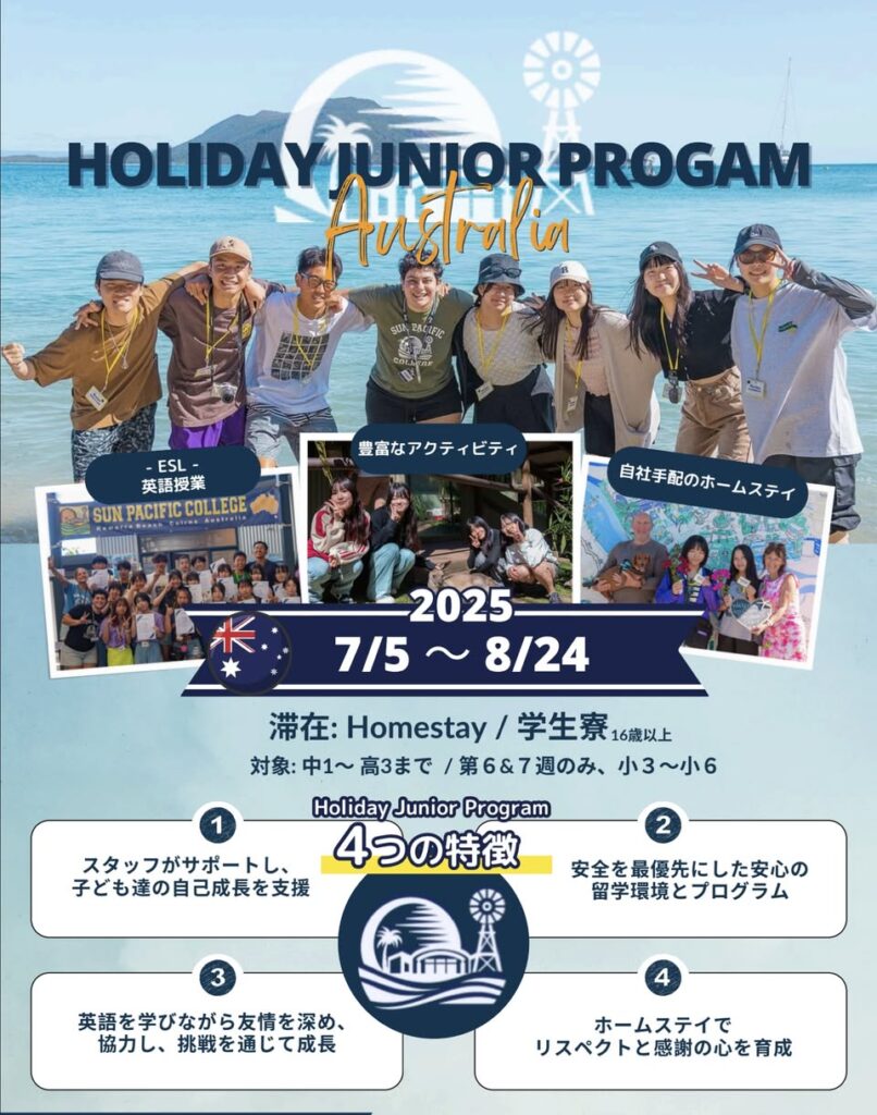 2025オーストラリア、ケアンズ夏休みホリデージュニアプログラム