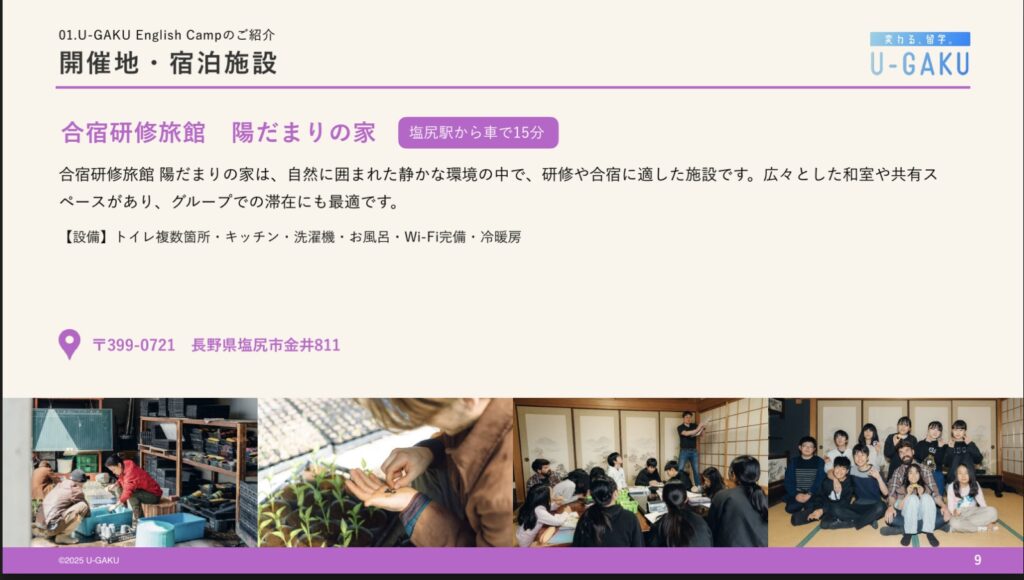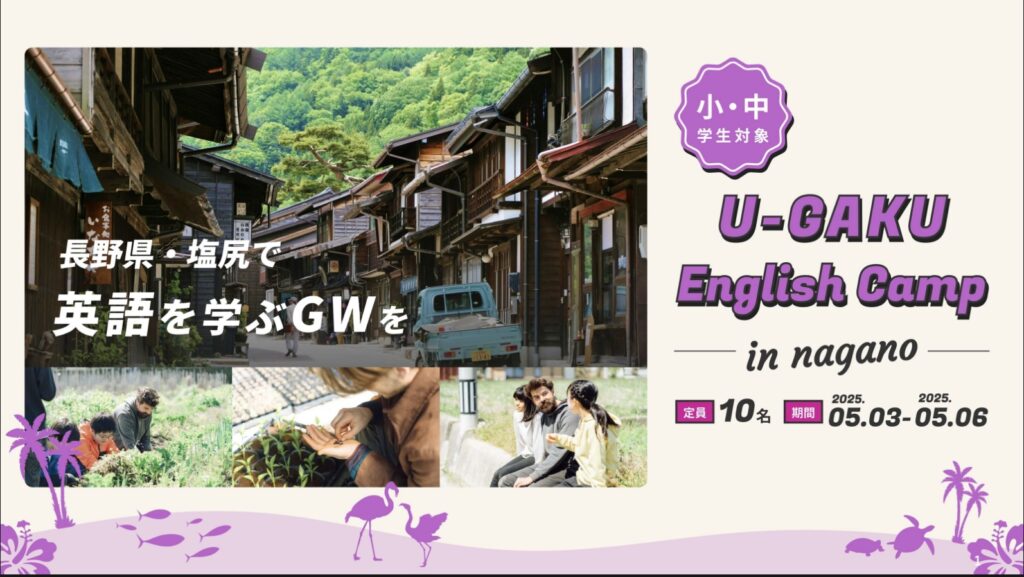 「2025GW、長野県・塩尻 小中学生向け国内イングリッシュキャンプ」と記載の上、お問い合わせ下さい。