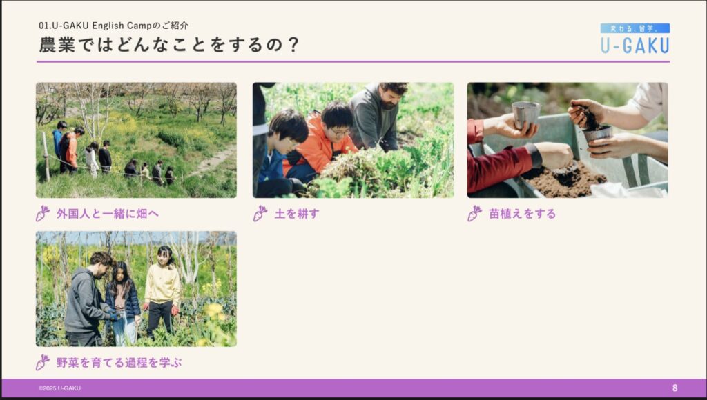 農業と英語体験が同時にできる小中学生向けの合宿型サービス。
