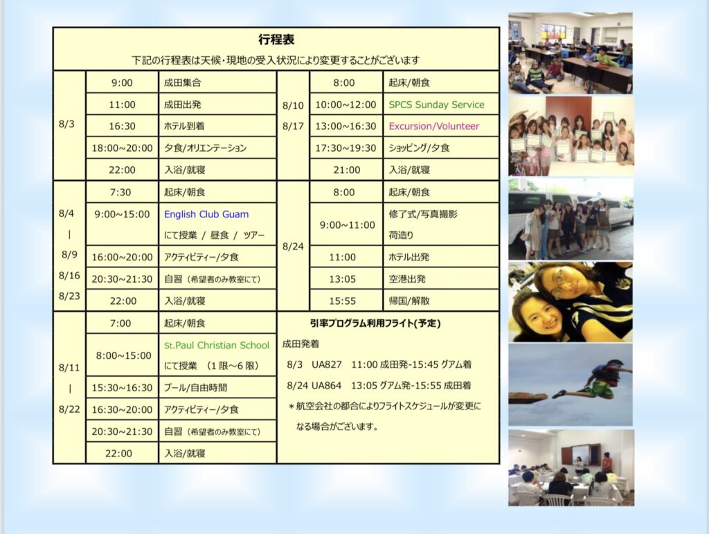 「引率付!2025年夏、グアム現地校体験あり! 英語研修&体験学習」と記載の上お問合せください。