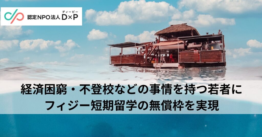 認定NPO法人D×P(ディーピー)は、不登校、家庭環境、経済的な理由などにより孤立する10代・20代の若者に寄り添い、進路や生活の支援を幅広い活動を行っています。オンラインでの相談や居場所づくり、企業や団体との連携を通じて、若者が希望を持てる社会の実現を目指しています。