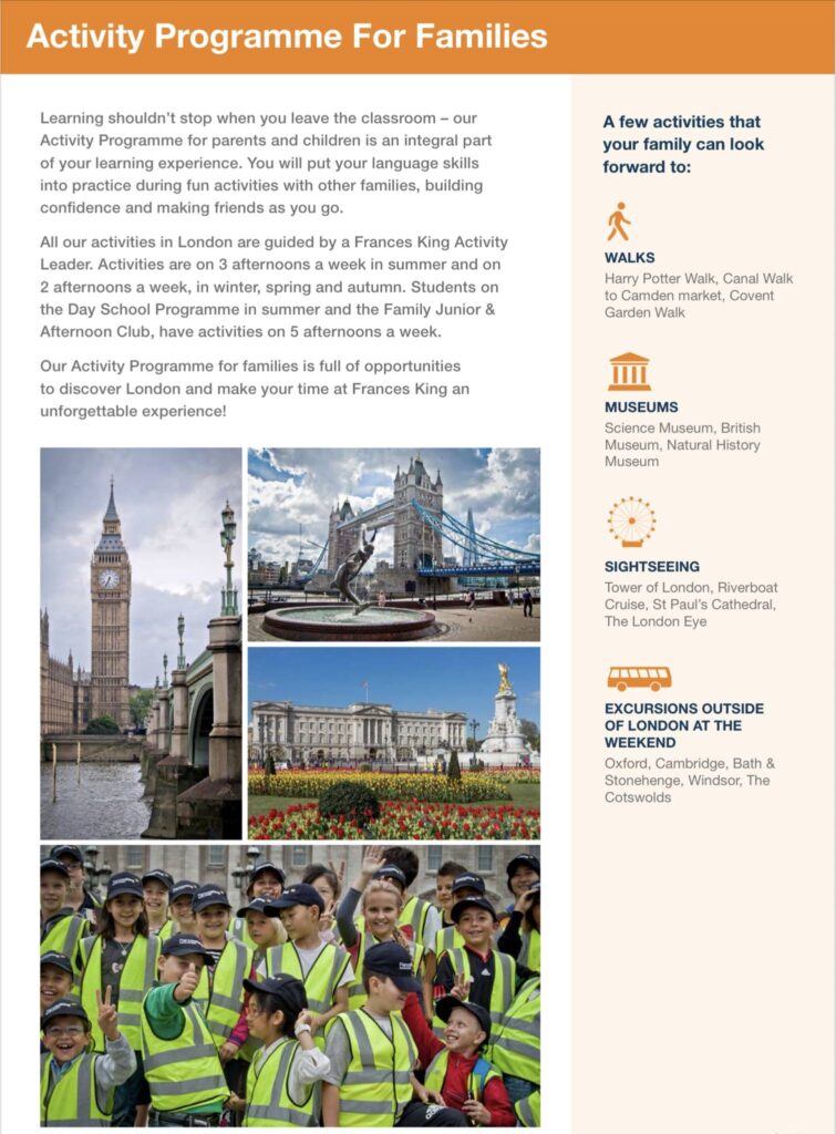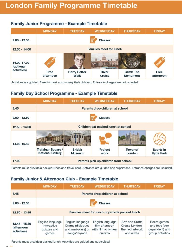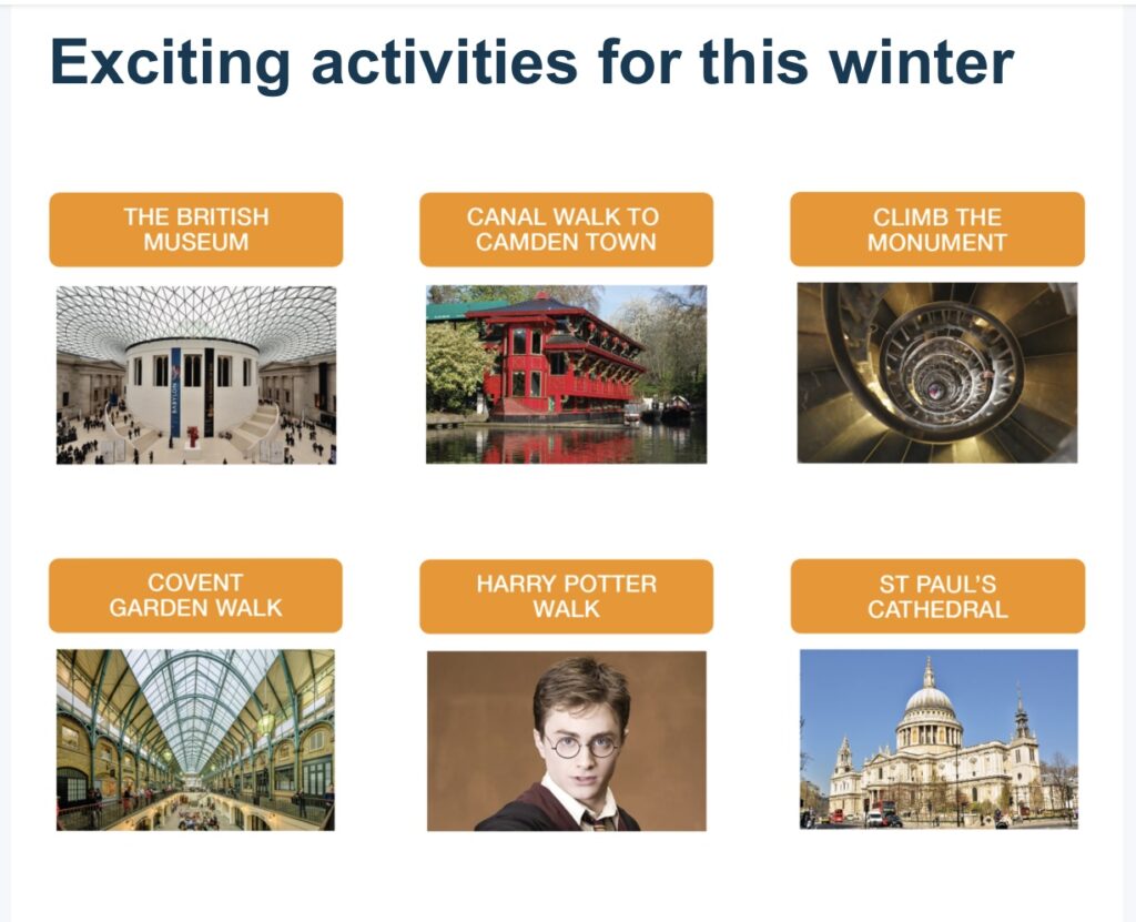 オプショナルアクティビティは、ハリーポッターウォーク、ロンドン市内観光などあり