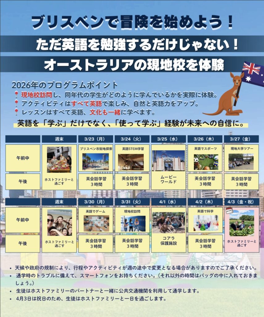 2026年春休みオーストラリア、ブリスベンEnglish Academic Camp