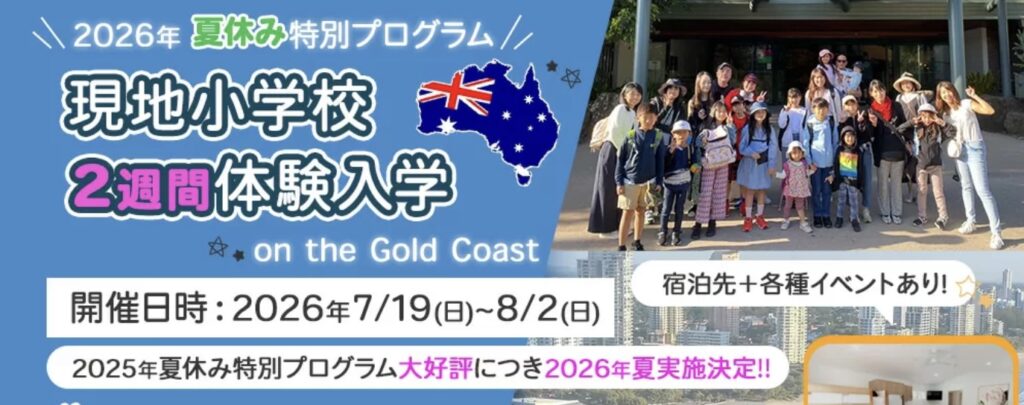 2026年夏休み オーストラリア現地小学校2週間体験 親子留学