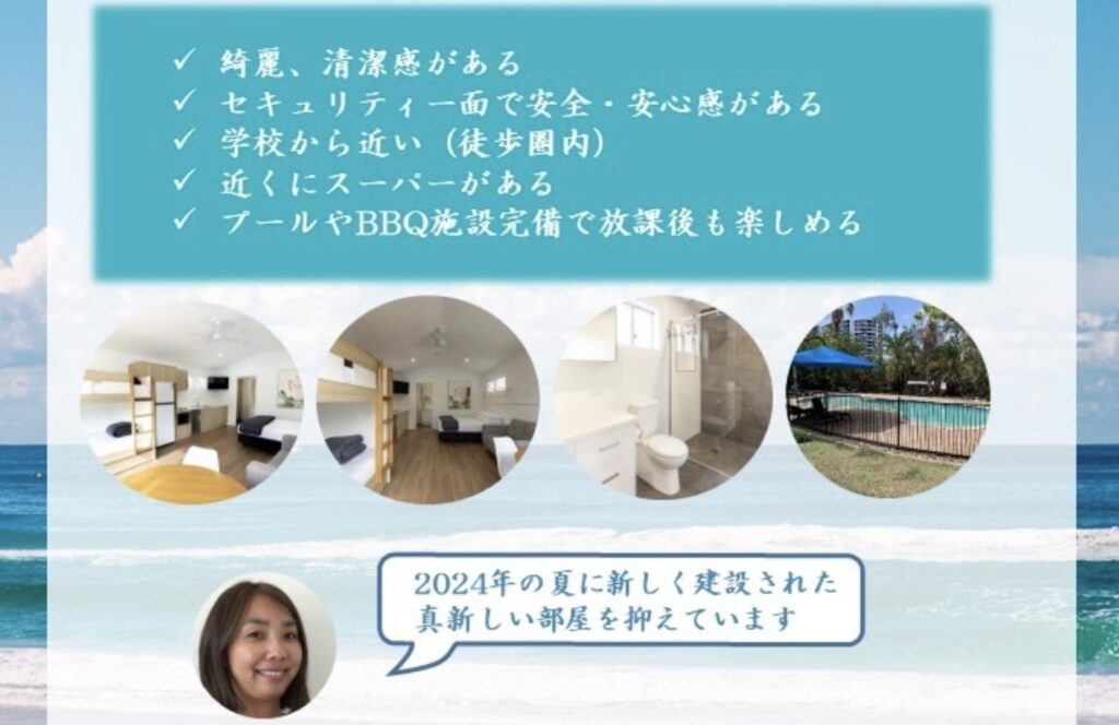 その他:カランビン動物園観光ツアー、BBQ、無料ミニゴルフあり、宿泊先の部屋にキッチンあり(自炊可能)近くにスーパーあり、現地校までは徒歩で通学可能