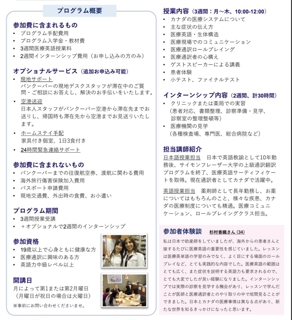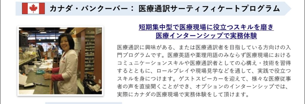 「カナダ・バンクーバー:医療通訳サーティフィケートプログラム」と記載の上お問い合わせ下さい。