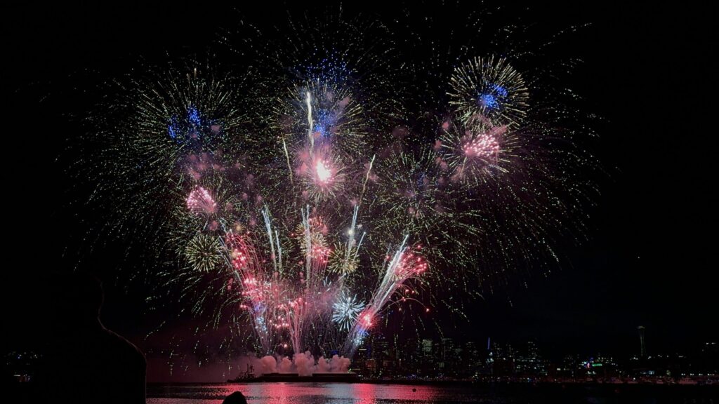 私は当日はGas works parkというSeattleで1番人が集まる場所で花火を見ました!