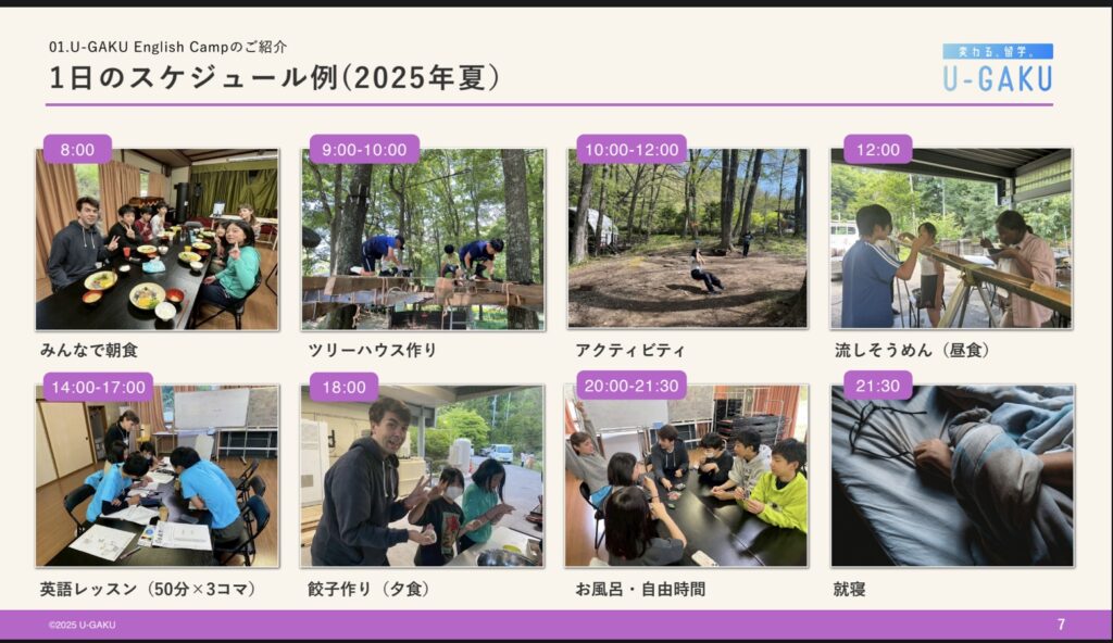 授業料、教材費、アクティビティ、食費(1日3食)、滞在サポート費