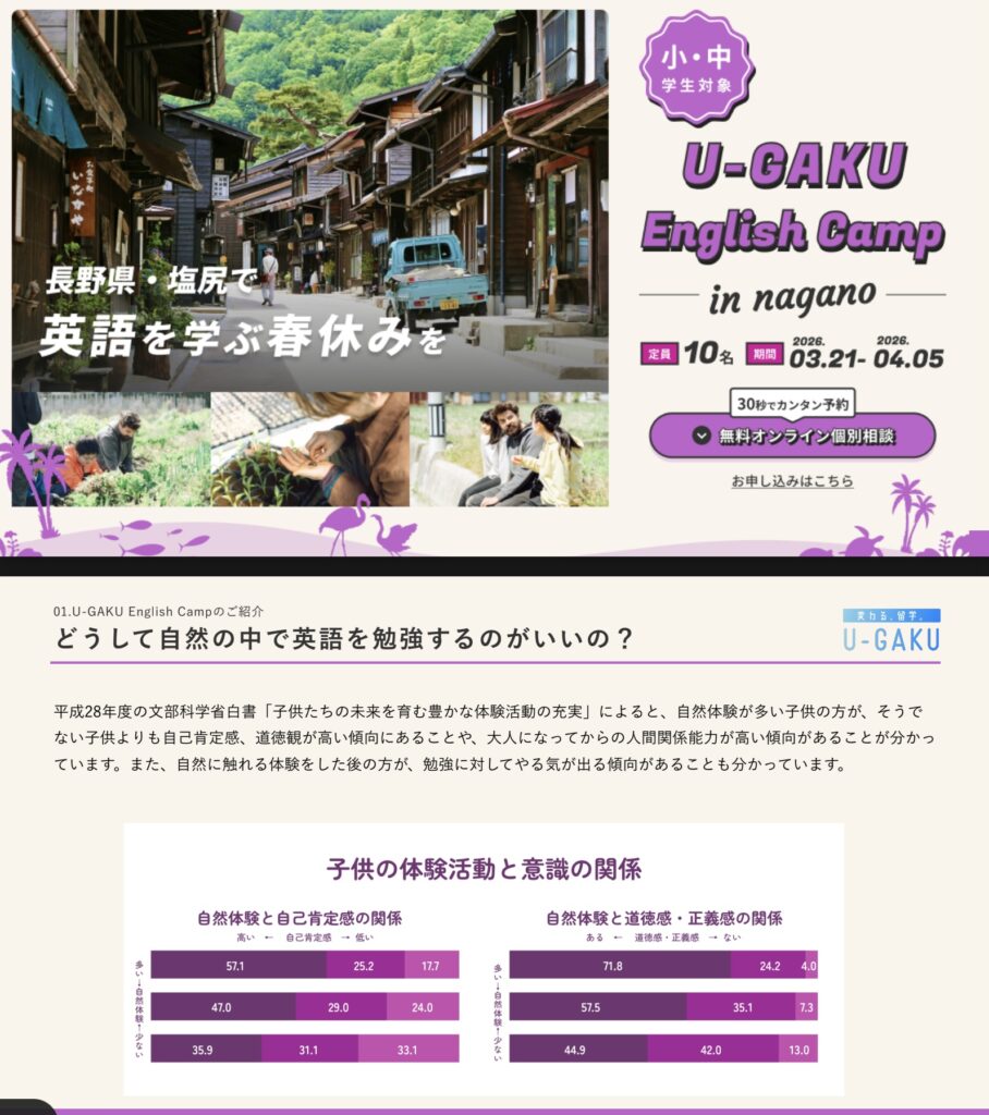 「2026年春休み 長野県塩尻 イングリッシュキャンプ」と記載の上お問い合わせ下さい。