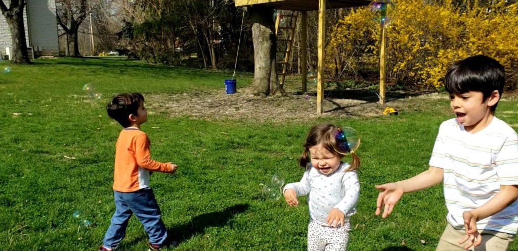オハイオ州の春は雪が降るほど寒かったり、半袖で過ごせるくらい暑かったりと気温差が激しいです。なので、暖かい日になるべく多く外で遊べるようにルーティンを少し変えています。