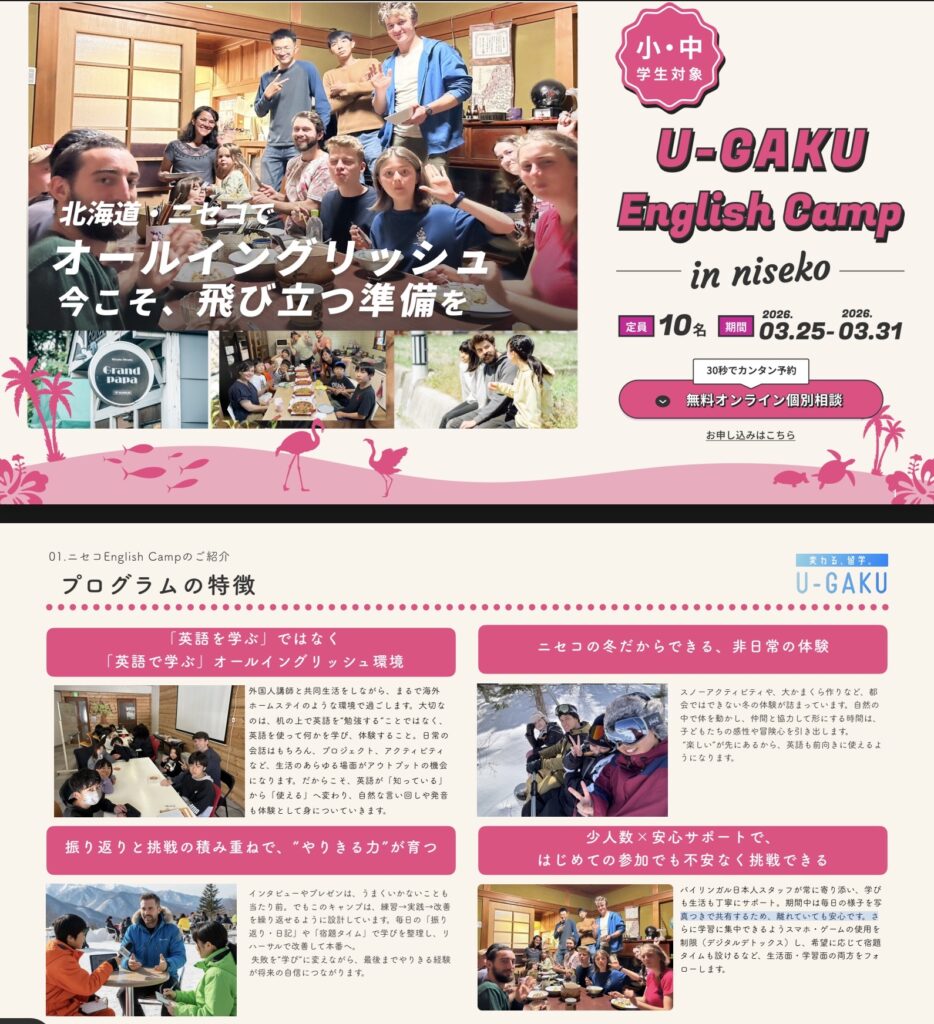 「2026年春休み 北海道ニセコイングリッシュキャンプ」と記載の上お問い合わせ下さい。