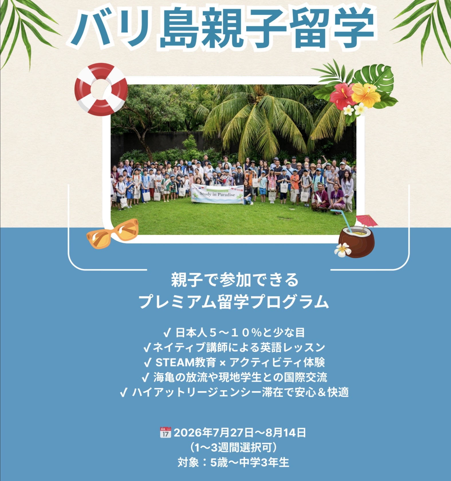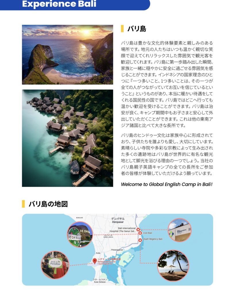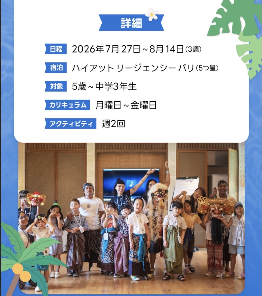 親子留学!2026夏インドネシアバリ島イングリッシュキャンプと記載の上お問合せください。