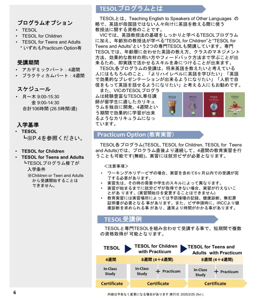 TESOL 4週間 ⇒ TESOL Children 4週間 ⇒ オプション:教育実習(4週間)となります。