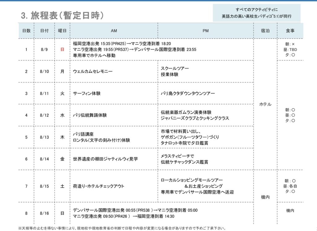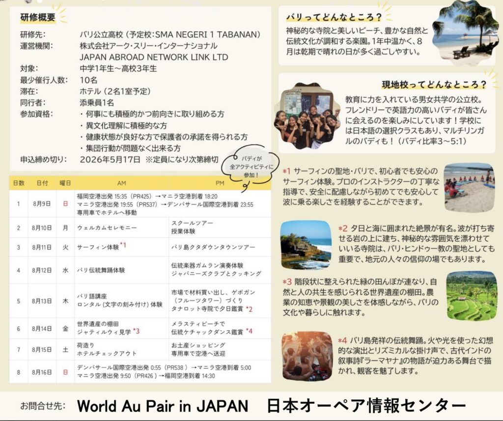 引率付!2026年夏・中高生インドネシア、バリ島現地校バディプログラムと記載の上お問合せください。