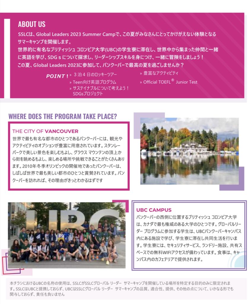カナダのバンクーバーUBCキャンパスを舞台に開催される「グローバルリーダー」
