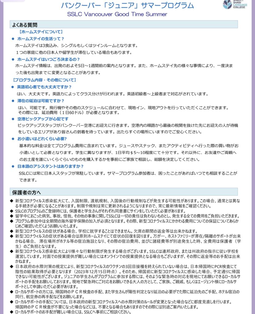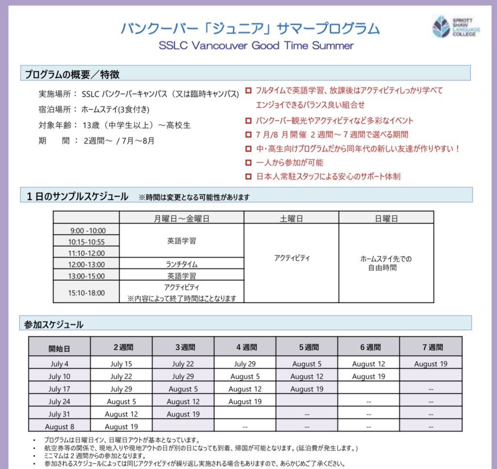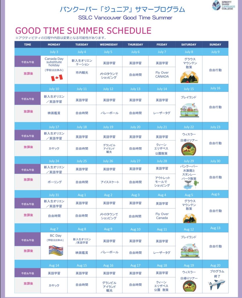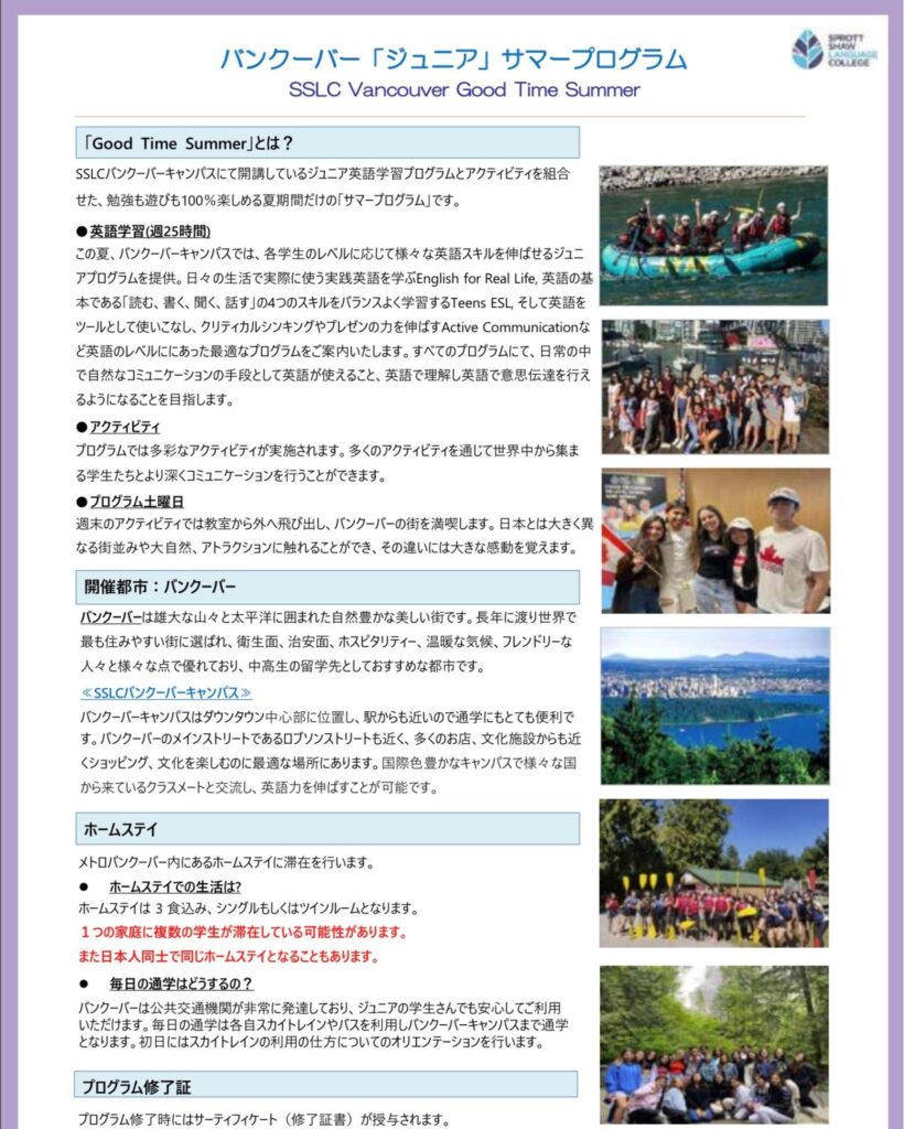 ◆2023年夏 バンクーバー「ジュニア」サマープログラム◆