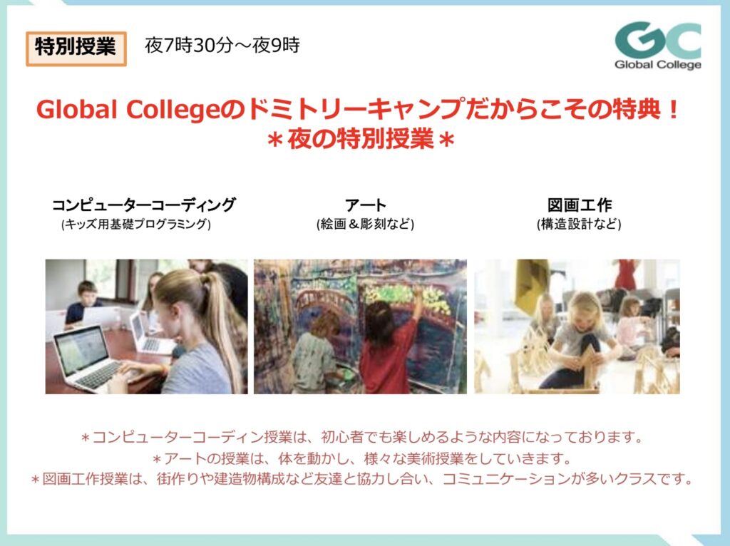 ・コンピューターコーディングなどのユニークなクラスもあります。